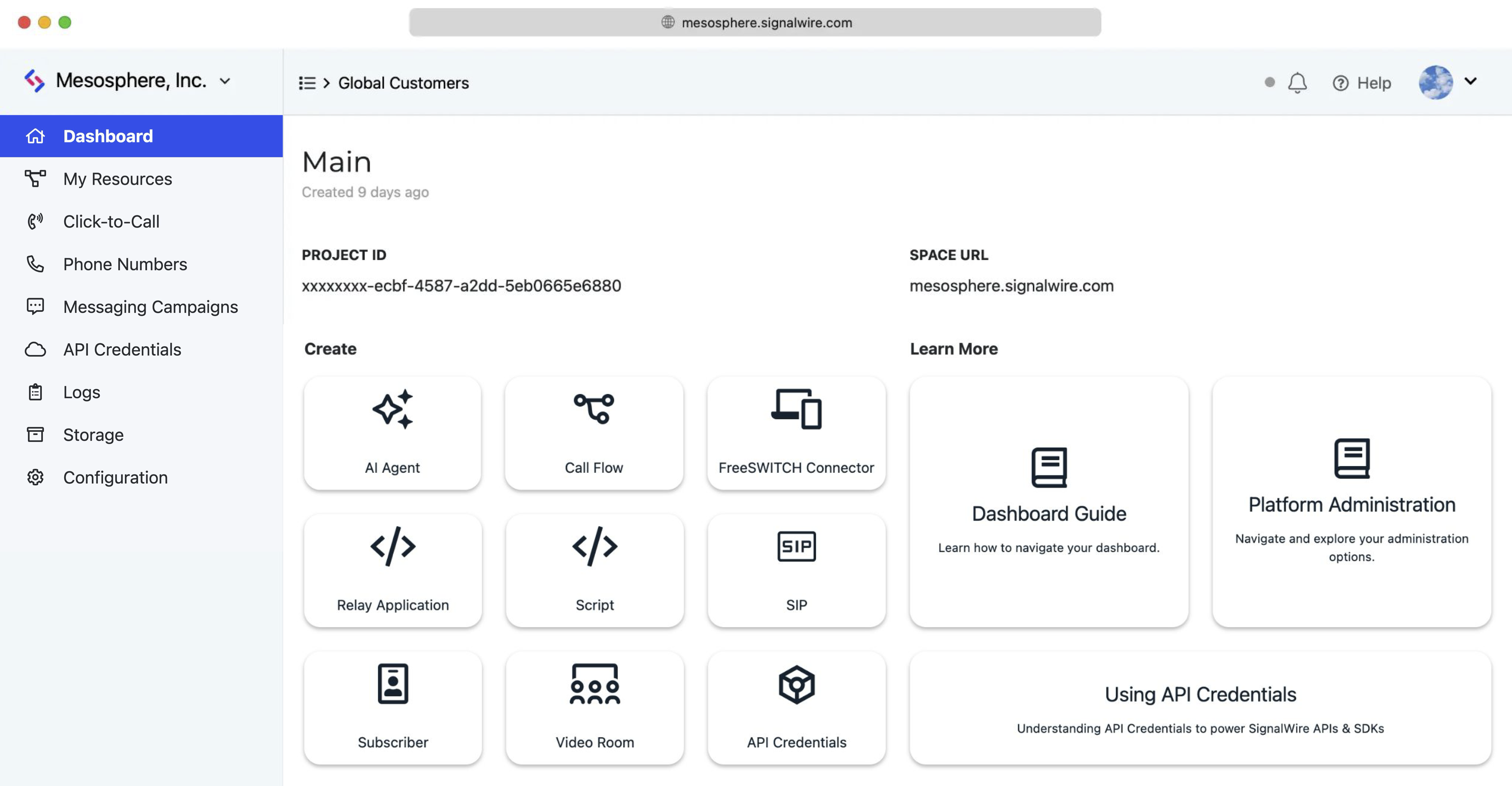 The Dashboard is a unified command center for administrating your SignalWire Space.